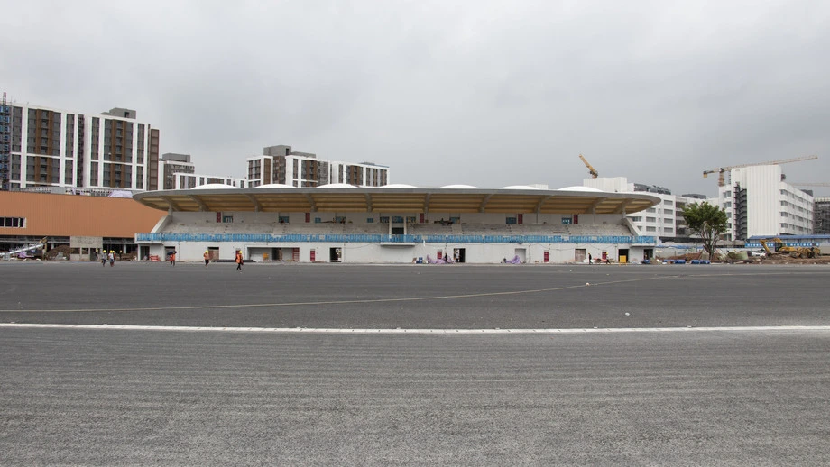 بمجرد اكتمال تركيب العشب، يدخل الملعب مرحلة التشطيب النهائية.