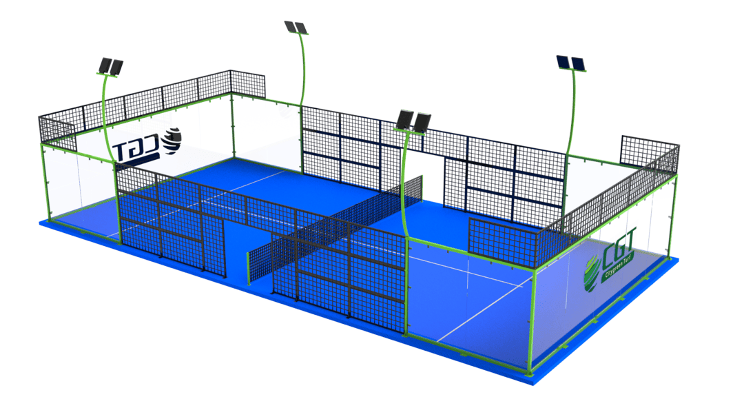 حلول بانورامية لملاعب البادل - عرض متكامل يشمل عشب البادل، والهيكل الفولاذي، والسياج، والإضاءة، وهو مصمم بشكل مثالي لأسواق البادل سريعة النمو